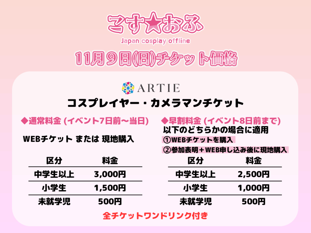 いつもこす☆おふへのご参加、誠にありがとうございます。11月9日(日)に開催予定のイベントは、静岡最高クラスのステージを誇る「ARTIE」での実施となります。
